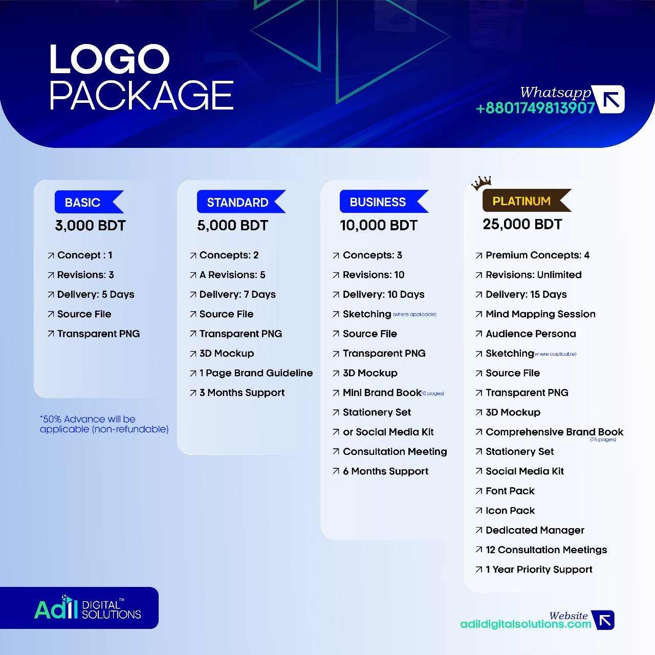 আপনার ব্র্যান্ডকে আরও শক্তিশালী পরিচয় দিতে এই প্যাকেজ তৈরি।